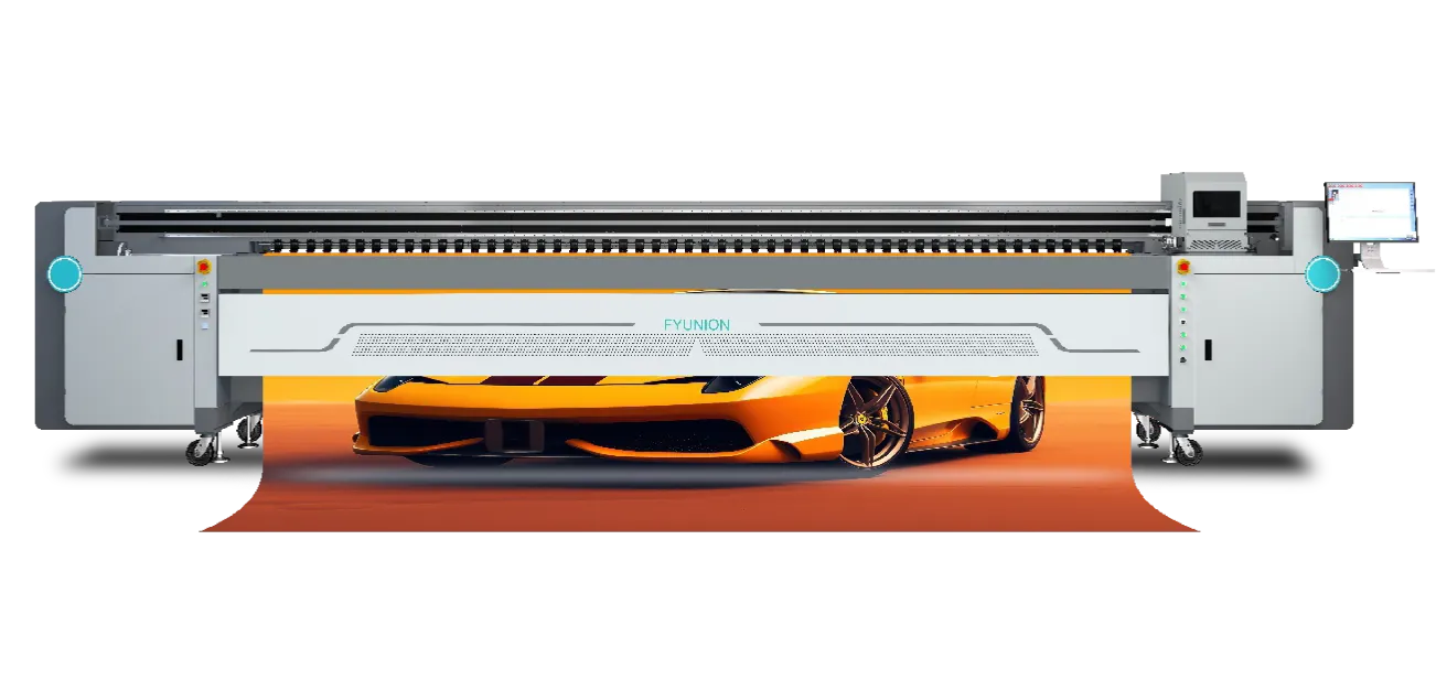 Home » Solvent Printers » FY-5300AT Plus FY-5300AT Plus Download Catalog Model Model FY-5300AT Plus Print Width 5.3m Print Speed ModelFY-5300AT Printhead SPT Alpha 1024HGSPT 5O8GS Number of Printhead4pcs6pcs8pcs Print width 5300mm Print Speed 2PASS288 m²/h 410 m²/h 180 m²/h Print Speed 3 PASS192 m²/h 275 m²/h 140 m²/h Print Speed 4 PASS144 m²/h 205 m²/h90 m²/h Specification Air Compressor Requirement Positive 0.6~0.8MPa Media Type Banner,vinyl,mesh and other roll to roll outdoor Ink: Negative pressure ink supply Printhead Height Equipped (Infrared Ray+Fan Drying) RIP United Fancy, FlexiPRINT, Maintop Printer AC220V 50HZ 1500W Dryer AC220V 50HZ 7200W Platform heating AC220V 50HZ 2000W Features 01 Negative pressure ink supply and heatable sub tanks, to supply stable and steady ink flow under all conditions. 02 High intensive cross-beam of 15cmx20cm steel, plus machine finished aluminium bar and double silent linear guide. 03 Sturdy frame structure to assure mechanic precision and printing resolution after long life of use. 04 Starry platform for perfectly balanced heating and vacuum media hold-down. 05 Pneumatic electric press handle: pneumatic electric controlled press handle of pinch rollers and grid rollers ease of stable operation. Options Light box advertising Background Ceiling Wall Wrapping Bill Board Interior Decor